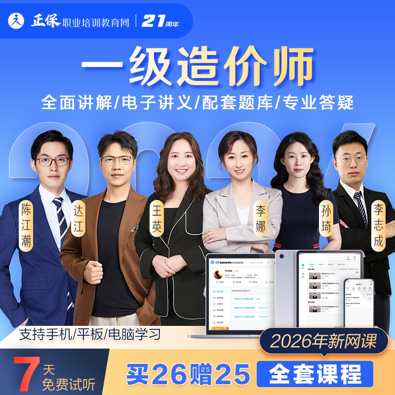 正保建设工程2026一级造价师工程师网课视频教材职业培训教育网李娜王英一造管理土建安装计量计价交通案例电子版课程课件题库2025