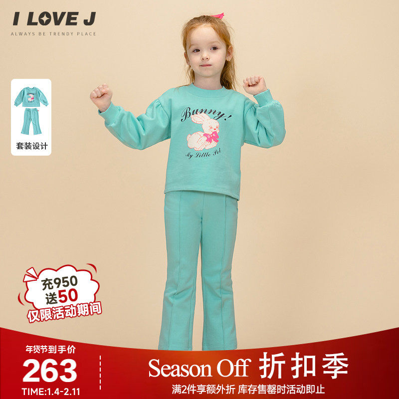 ILOVEJ童装2025秋季女童运动两件韩版套装兔子卫衣喇叭裤/JWSSE61
