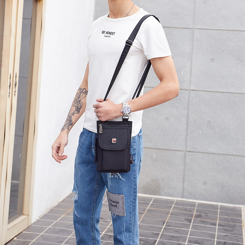男士单肩斜跨包多功能7寸8寸平板电脑手机腰包帆布运动小挎背包潮