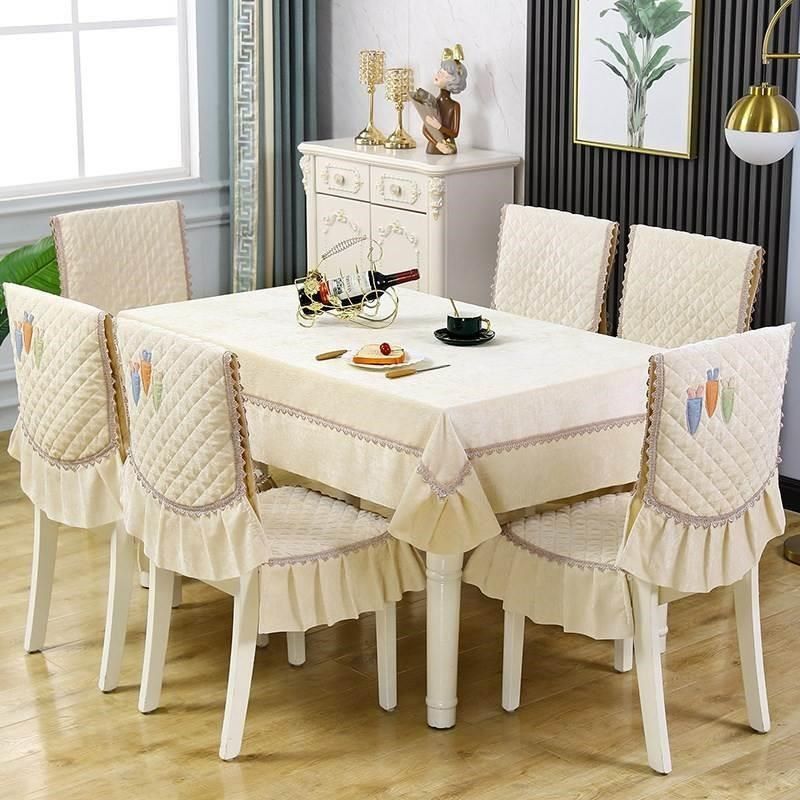简约加厚餐桌布棉麻餐桌椅套椅垫套装餐椅套加厚椅子套罩一体通用