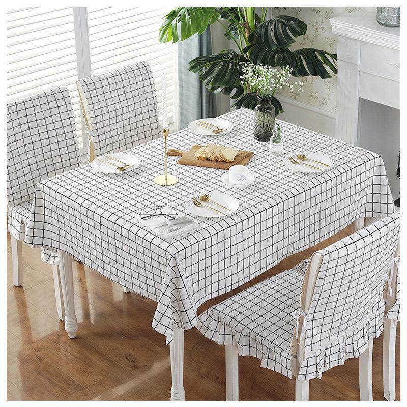 简约格子餐桌布椅套椅垫套装仿棉麻布艺长方形桌布餐椅子套罩家用