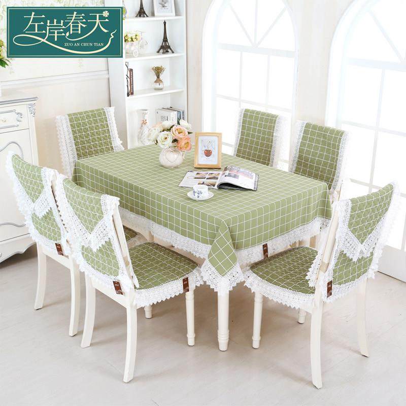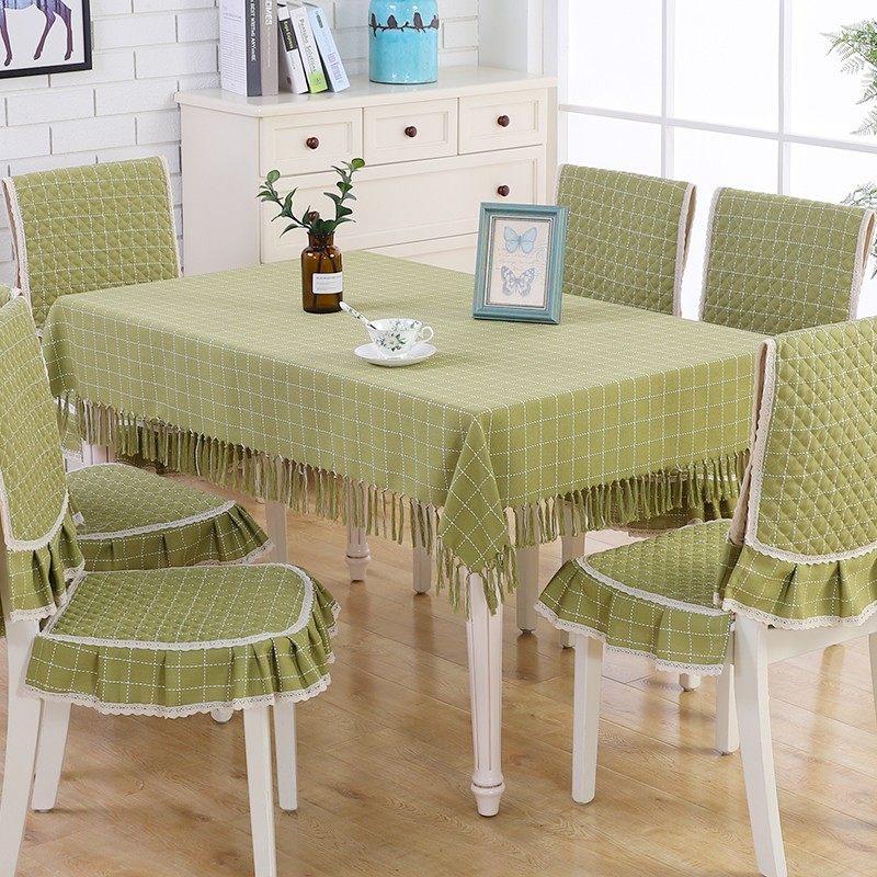 简约风格子餐桌布椅套椅垫套装棉麻布艺长方形桌布餐椅子套罩家用