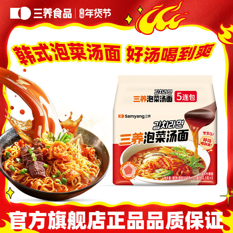 【天猫U先】三养辣白菜汤面韩式网红辣味方便面袋装泡面104g*2袋