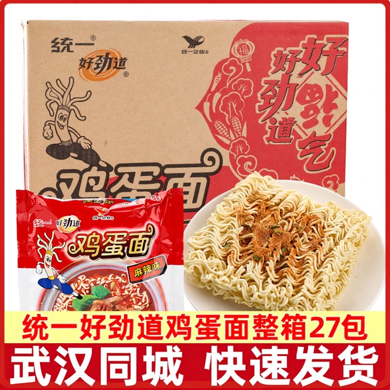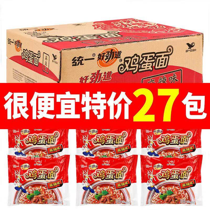 统一好劲道鸡蛋面27包整箱批发麻辣味方便面干脆面捏碎面干吃面