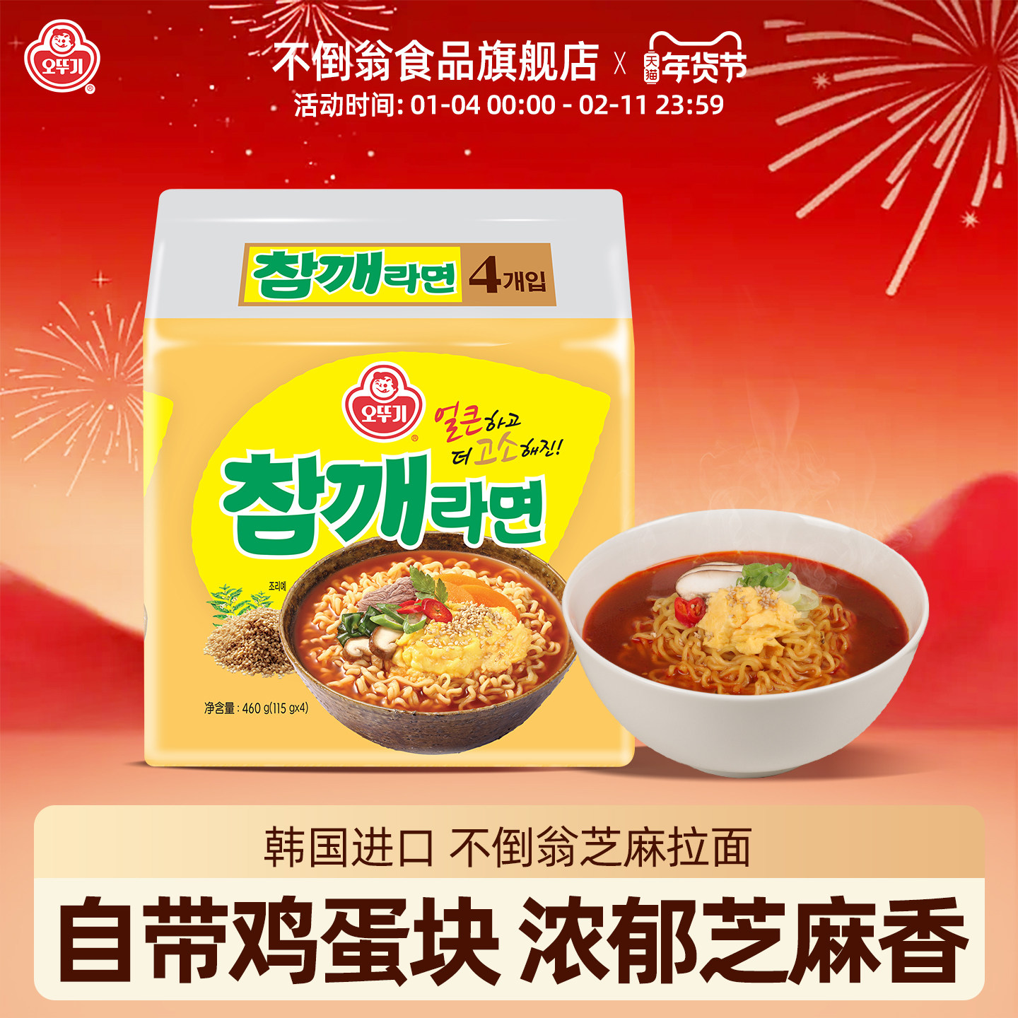 新品不倒翁鸡蛋芝麻拉面韩国进口辣味方便面夜宵泡面懒人速食拉面