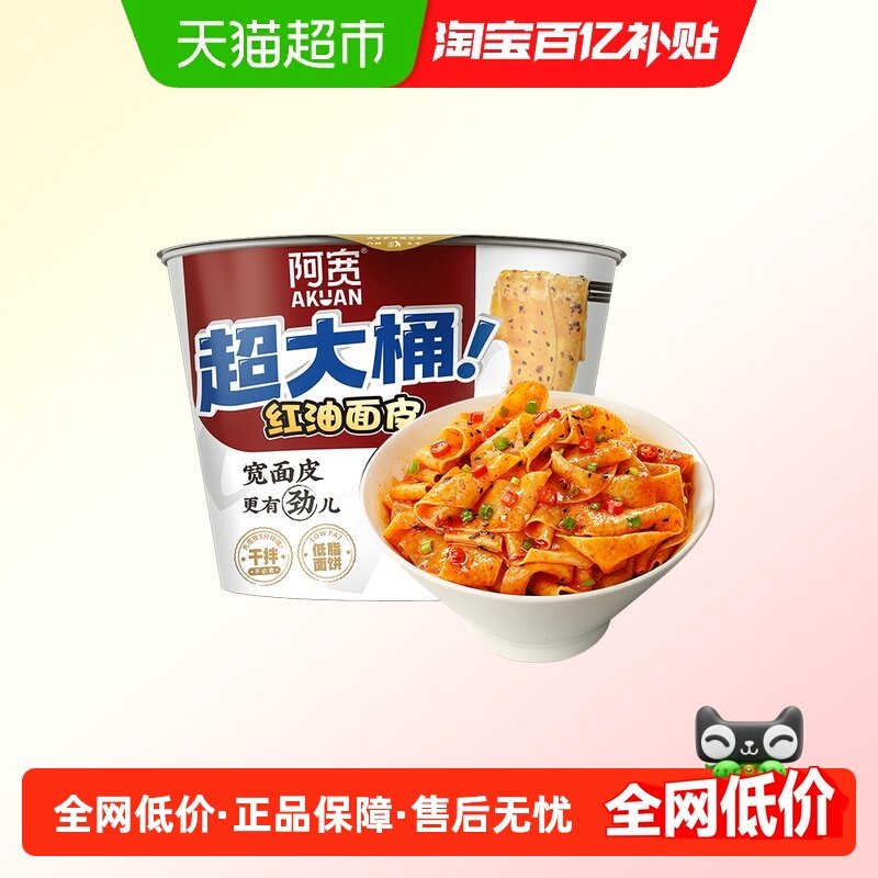 阿宽红油面皮big版超大桶泡面干拌面酸辣味方便面宽面速食夜宵