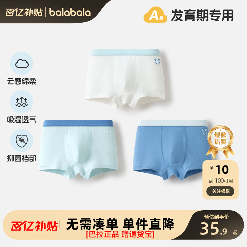 巴拉巴拉儿童内裤棉a类男童平角短裤小大童宝宝印花四角裤青少年