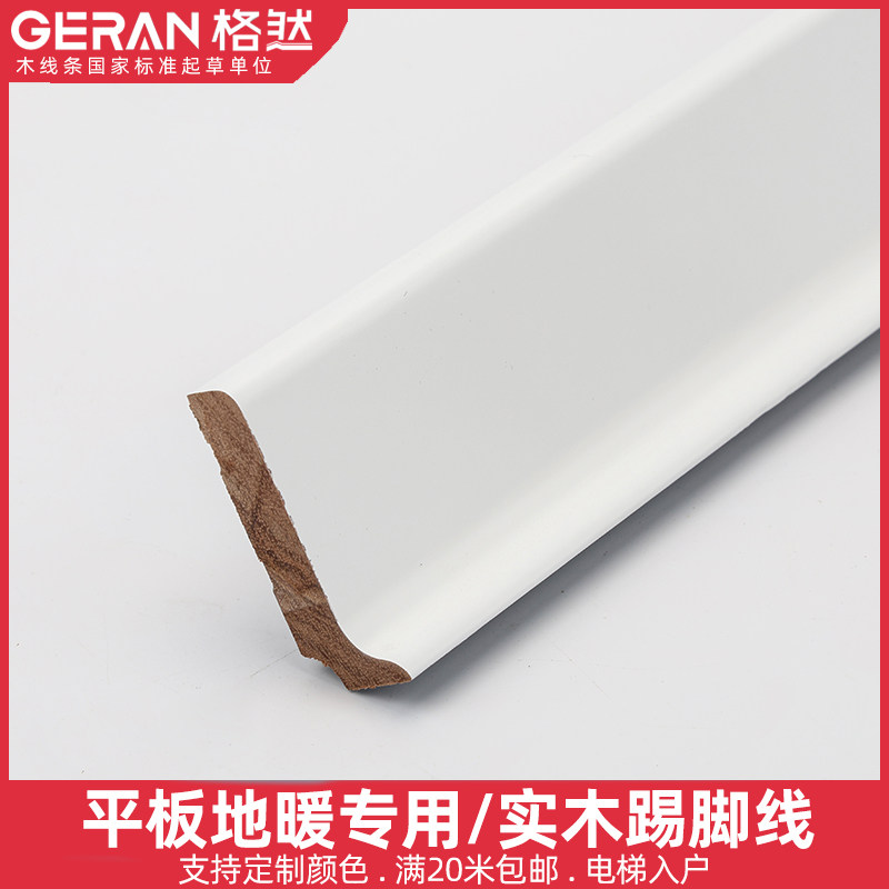 格然 地热实木踢脚线 纯白色烤漆 加厚 实木地板专用地暖地脚线