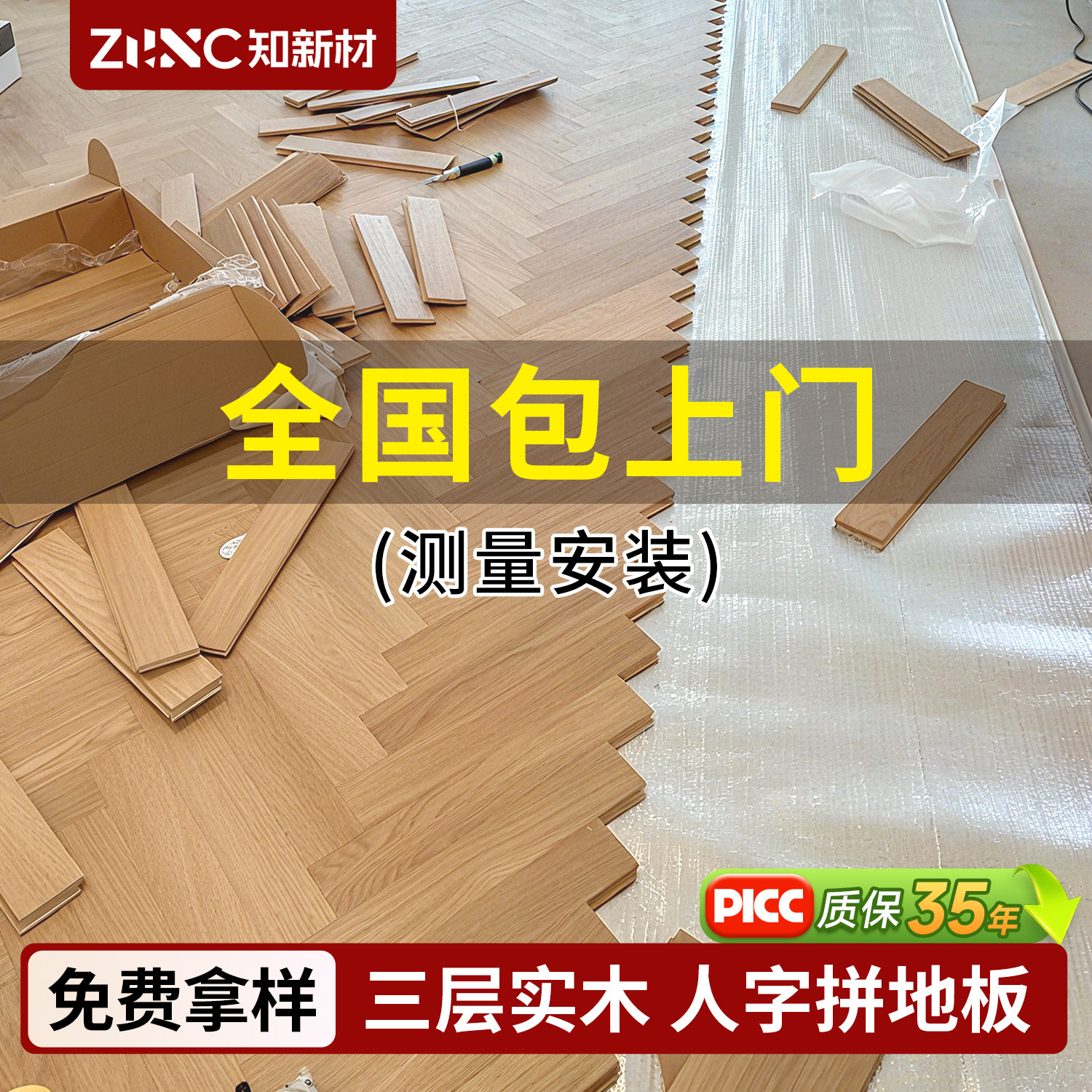 人字拼复合地板多层家用自己铺橡木原木风地暖专用实木三层木地板