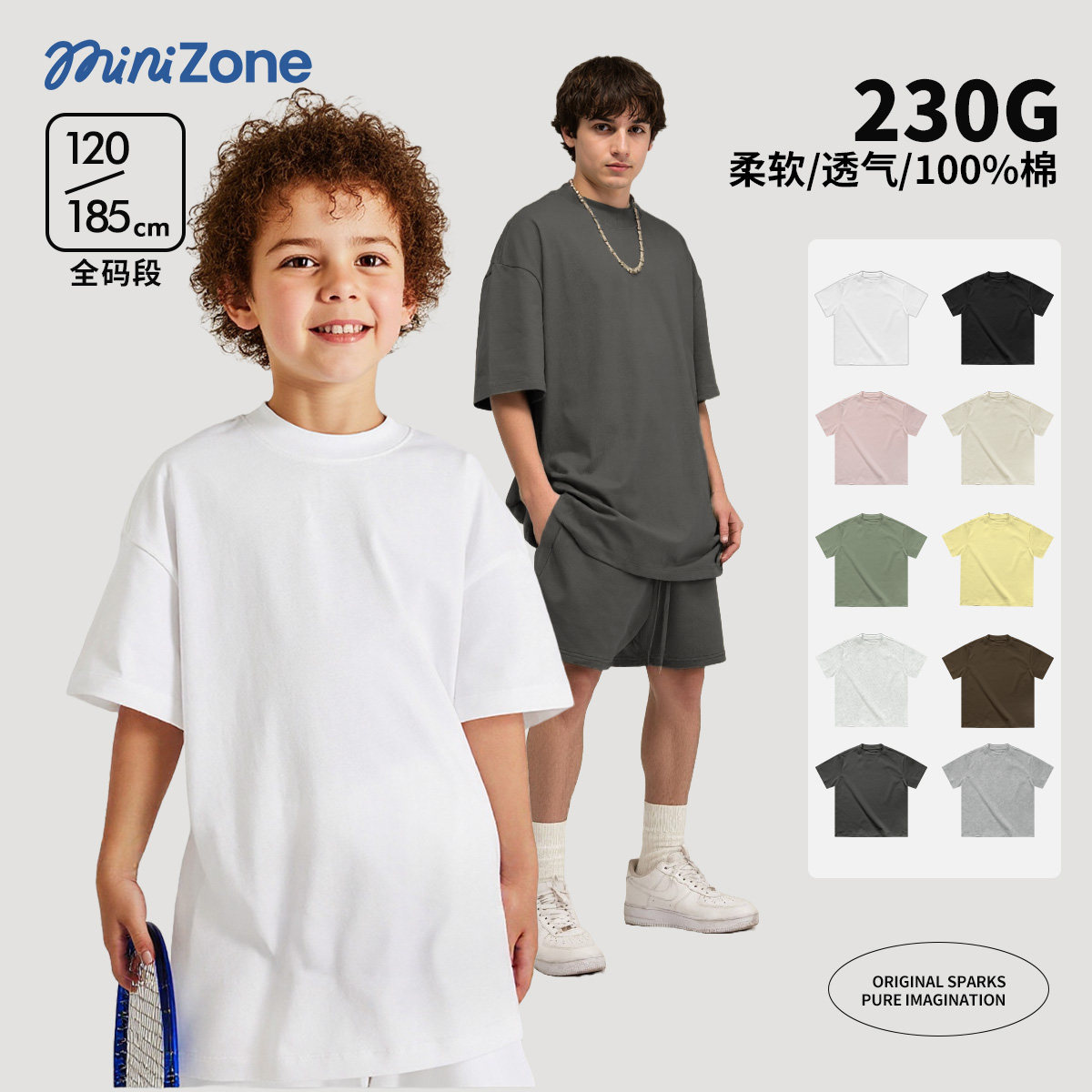 minizone儿童t恤夏装男童纯色体恤纯棉亲子装重磅T恤女童短袖上衣