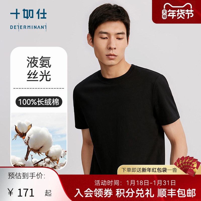 十如仕拒水拒油三防T恤春夏纯棉丝光短袖圆领男装纯色体恤T17