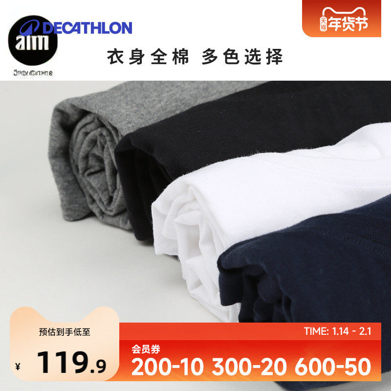 迪卡侬短袖T恤男春夏休闲圆领白t纯棉透气半袖打底衫纯色体恤SAT3