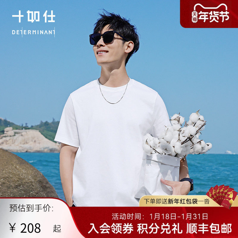 十如仕男短袖t恤纯棉丝光圆领休闲重磅纯色体恤夏季男女同款T02