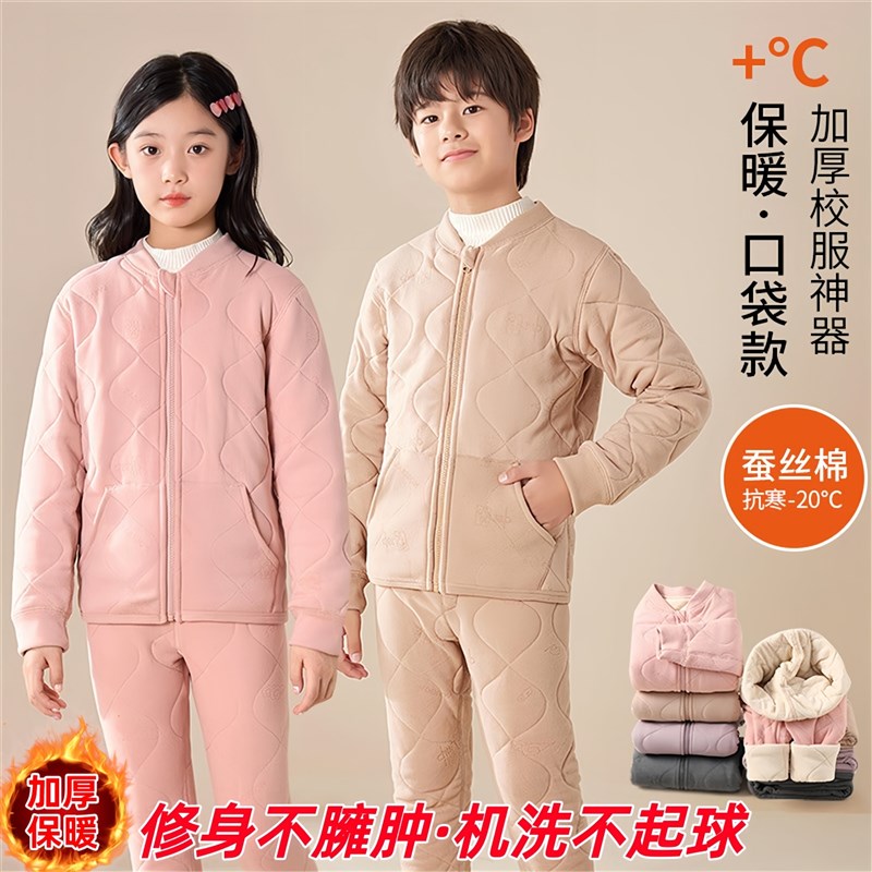 男童校服神器套装秋冬女童内搭棉服中大童保暖裤棉袄棉裤内胆童装
