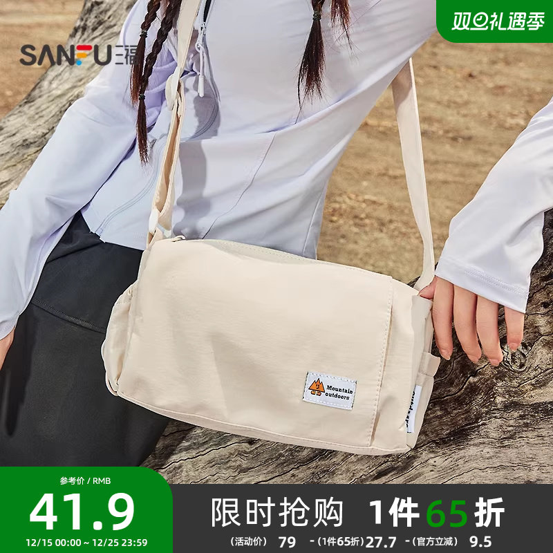 三福斜挎包夏季学院运动风多口袋轻量小枕头包帆布女包500193