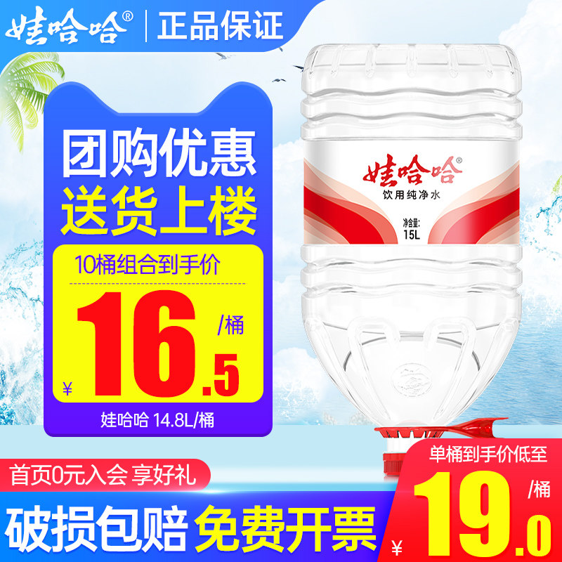 娃哈哈桶装水15L*5桶办公家庭超大瓶泡茶水非哇哈哈14升矿泉水