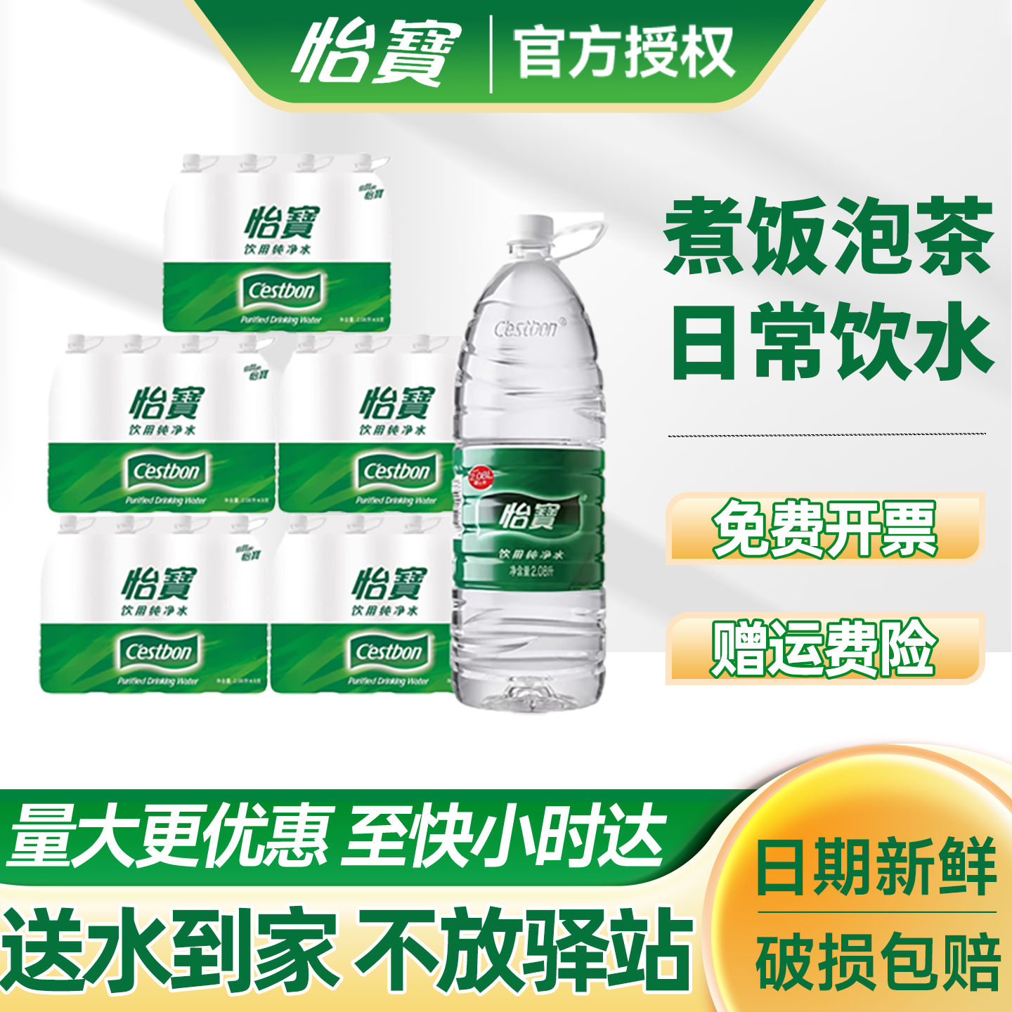 怡宝纯净水2.08L*8瓶*2箱整箱批特价大瓶饮用水泡茶水非2升矿泉水