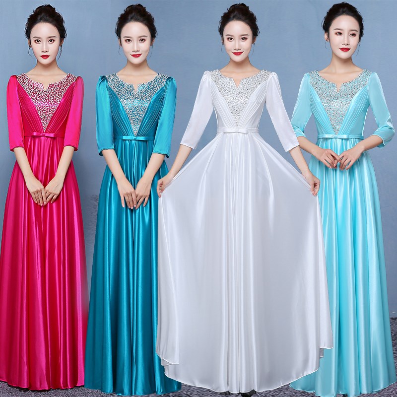 新选新款大合唱团演出服装女成人合唱长裙连N衣裙宴会主持人气质