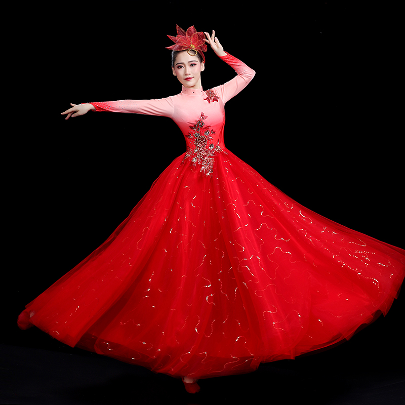 新选开场舞大摆裙演l出服2025新款大合唱长裙现代舞成人古典舞蹈