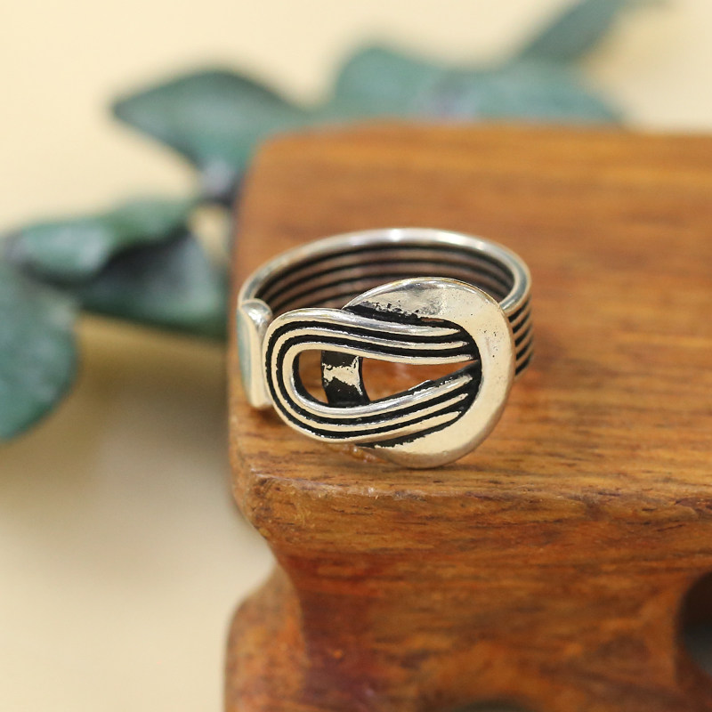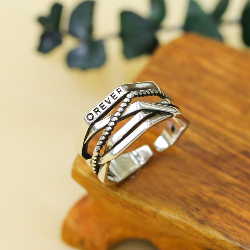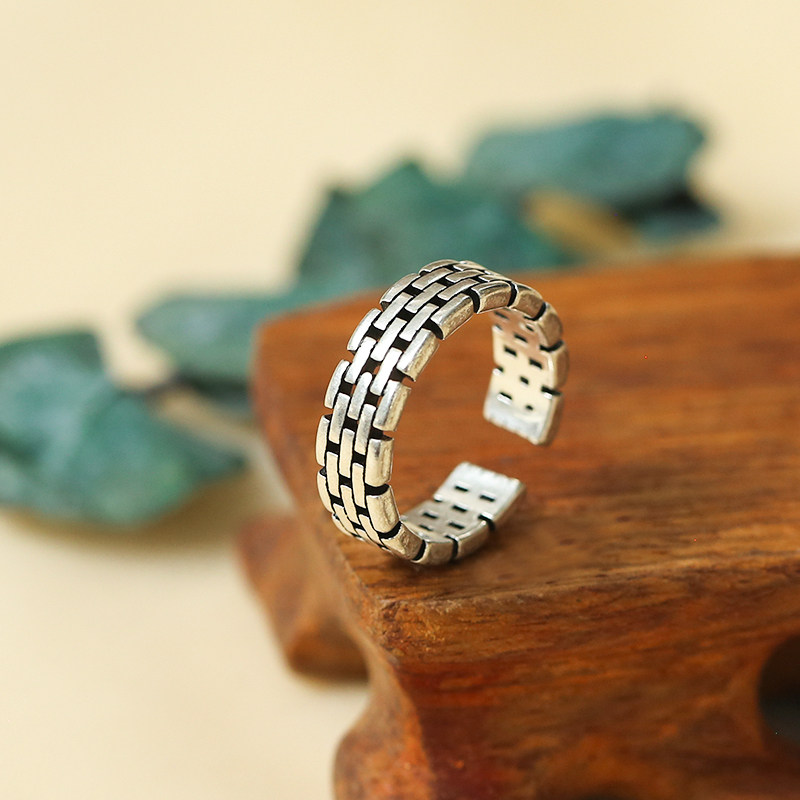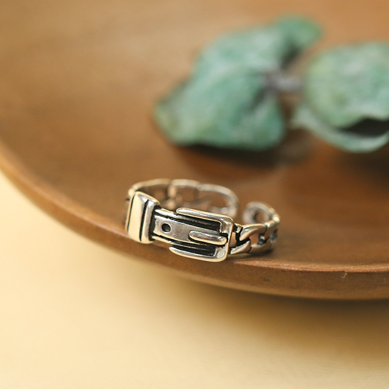 日韩S925银皮带戒指高级感复古个性泰银指环关节食指戒子银饰女式