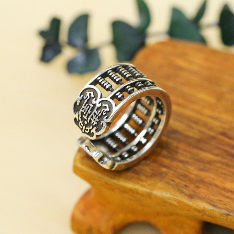 日韩S925银复古算盘戒指宽版甜美时尚指环关节食指戒子银饰品女式