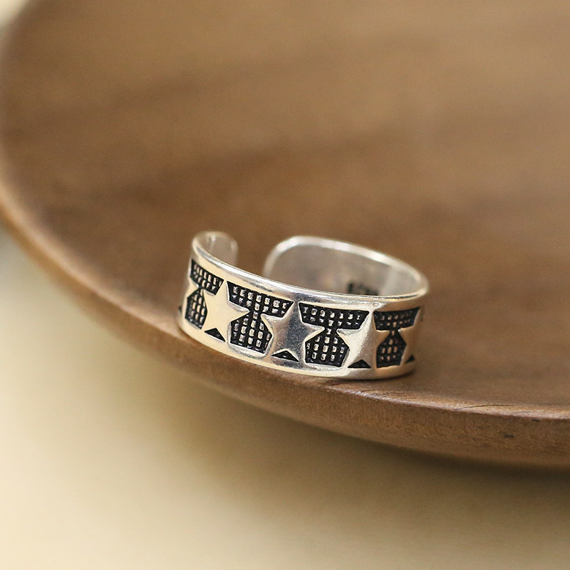 日韩高级感S925纯银星星戒指复古五角星指环关节食指戒子银饰女式