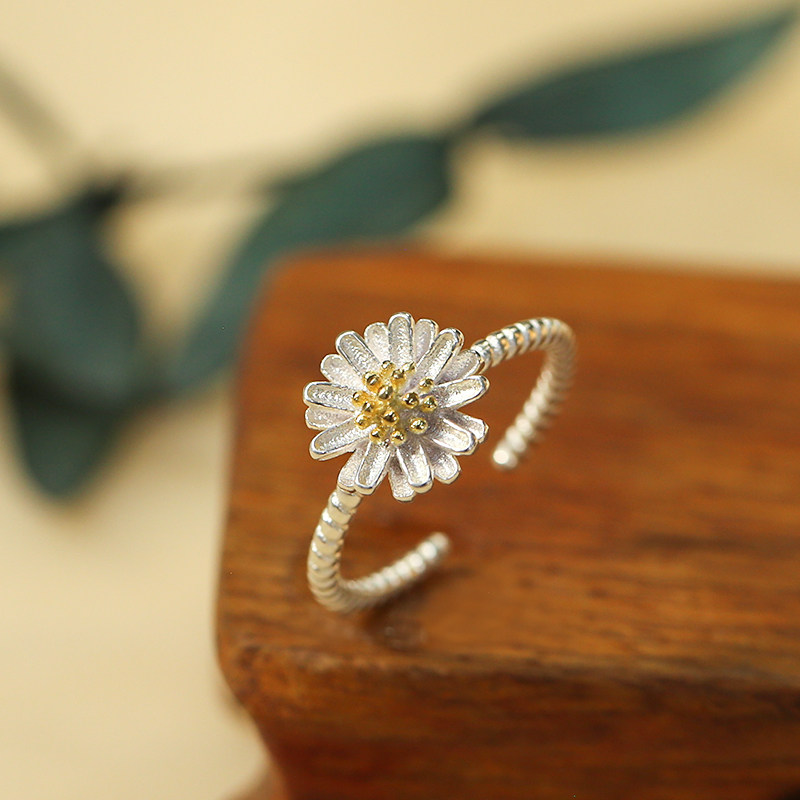 日韩S925银金蕊雏菊戒指高级感甜美个性指环关节食指戒子银饰女式