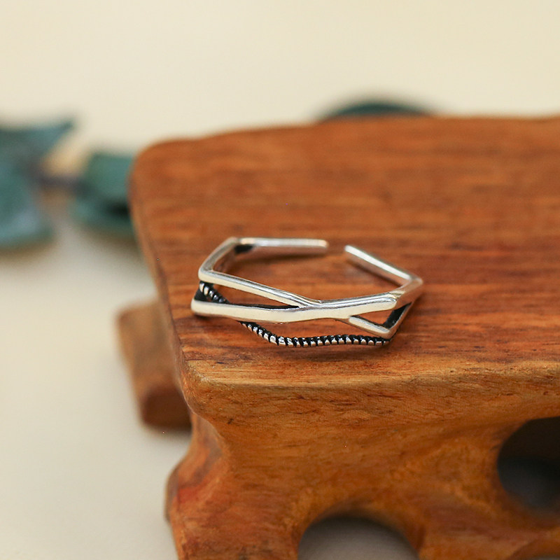 日韩S925银几何线条交叉戒指高级感复古指环关节食指戒子银饰女式