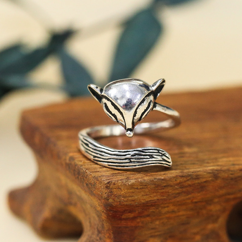 日韩高级感S925银狐狸戒指复古小动物指环关节食指戒子银饰品女式