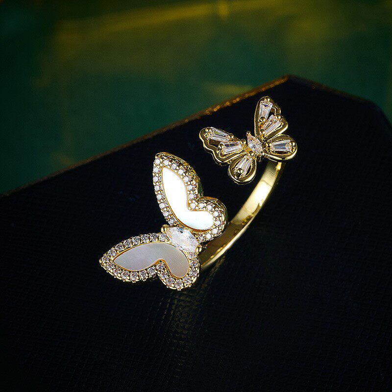 欧美蝴蝶戒指简约冷淡风戒子锆石女式开口可调节潮关节戒金银昆虫