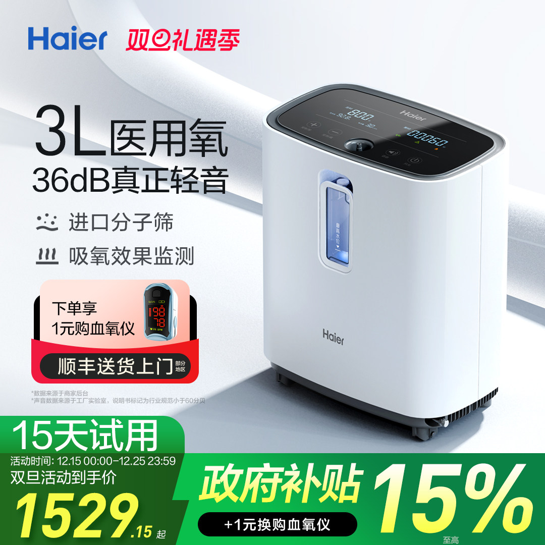 【国家补贴】海尔医用级制氧机家用老人孕妇吸氧3L家庭便携式小型