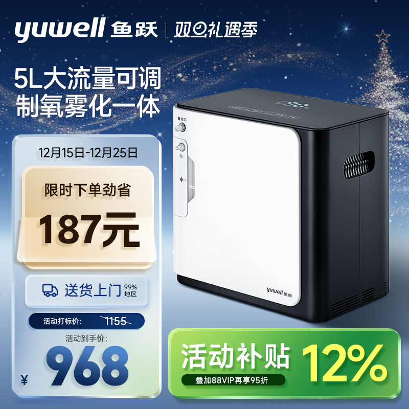 鱼跃制氧机老人孕妇吸氧机家用制氧雾化一体机小型便携呼吸氧气机