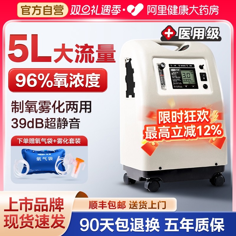 鱼跃制氧机家用吸氧机老人5L便携小型氧气机官方旗舰店孕妇吸氧升