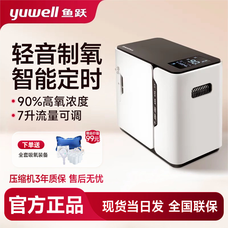 鱼跃制氧机家用老人孕妇吸氧机呼吸制氧雾化一体便携7升自动加湿