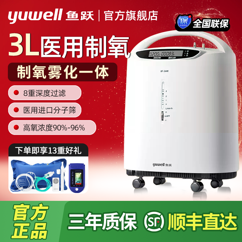 鱼跃制氧机医用家用老人孕妇吸氧机轻音3L3升I雾化一体官方旗舰店
