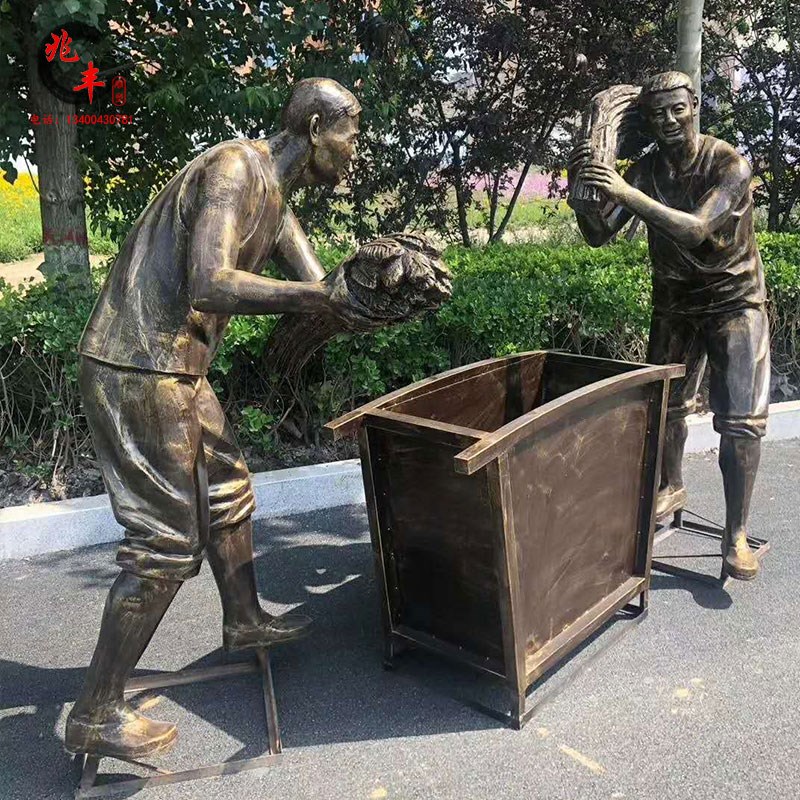 户外玻璃钢人物雕塑铸铜农耕文化民风民俗大摆件仿铜树脂园林景观