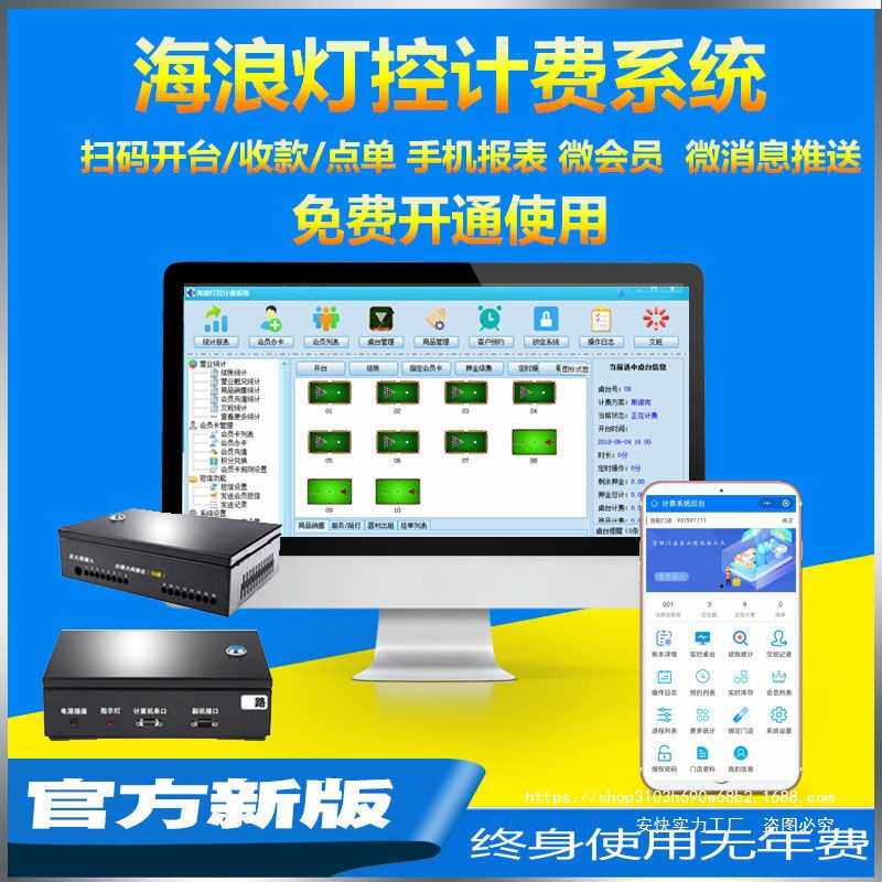 台球计费系统灯控台球室管理软件海浪台球厅自助收银收费计时系统