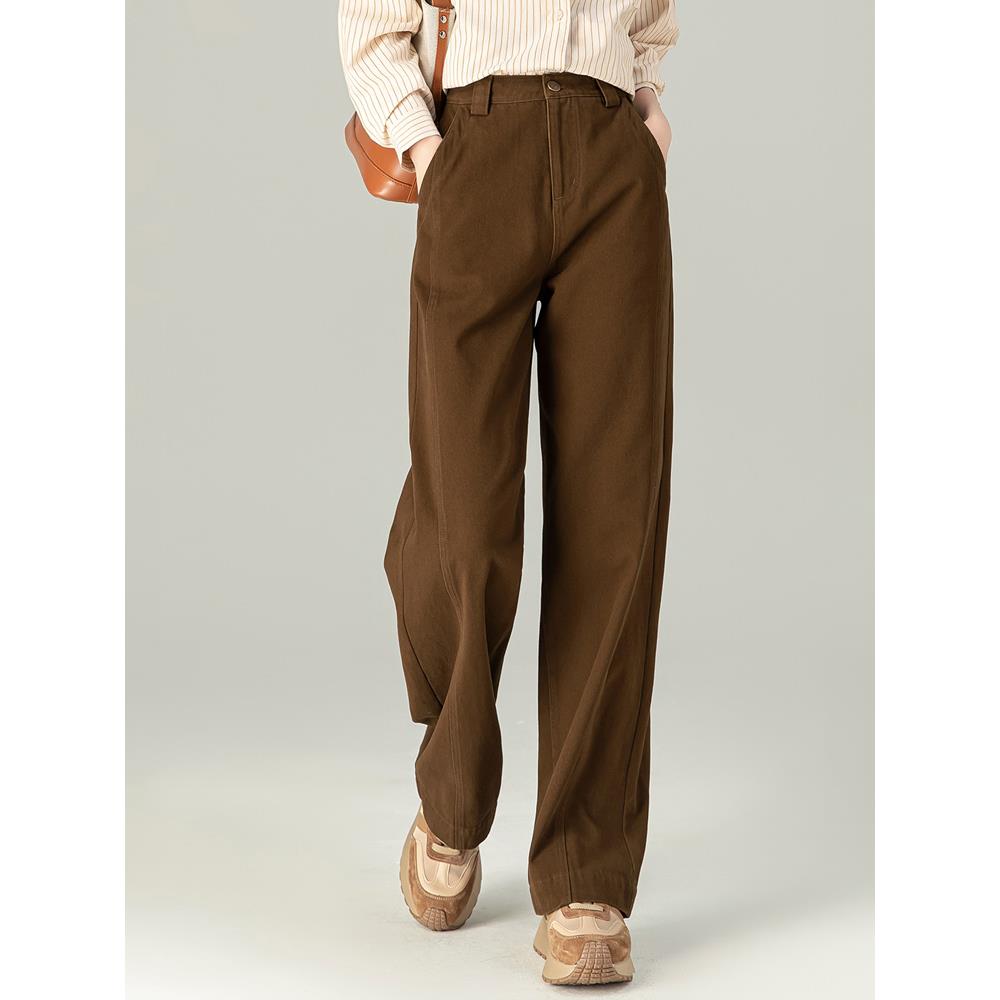 咖色休闲通勤直筒牛仔裤女2025春秋季新款高腰显瘦窄版阔腿长裤子