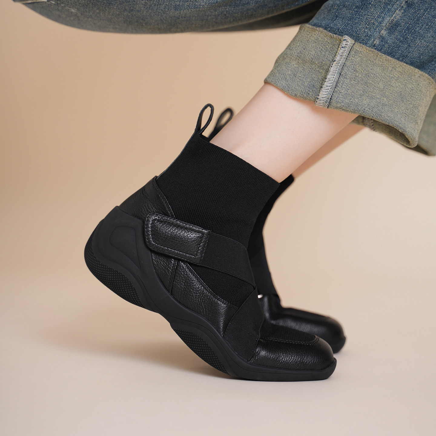 - 真皮厚底女靴短靴