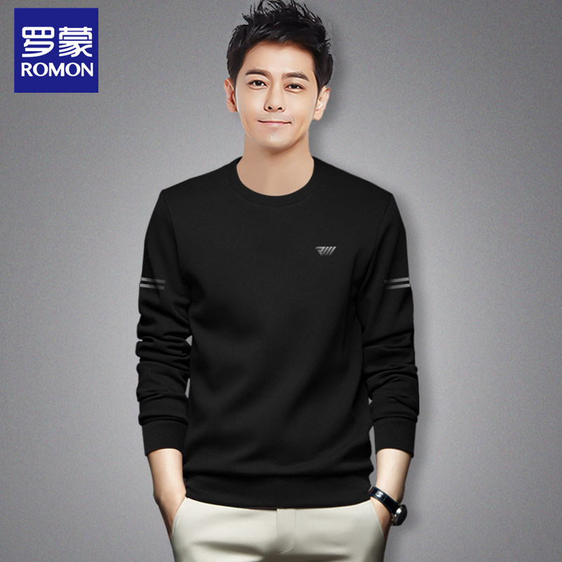 Romon/罗蒙XSX9202男士圆领卫衣男装新款简约修身休闲时尚套头T恤