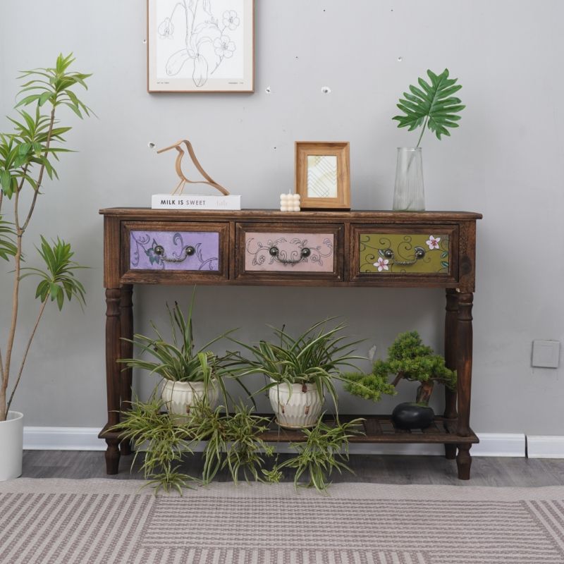 美式复古做旧抽屉花架阳台户外实木花园杂物工作台花盆置物架桌子