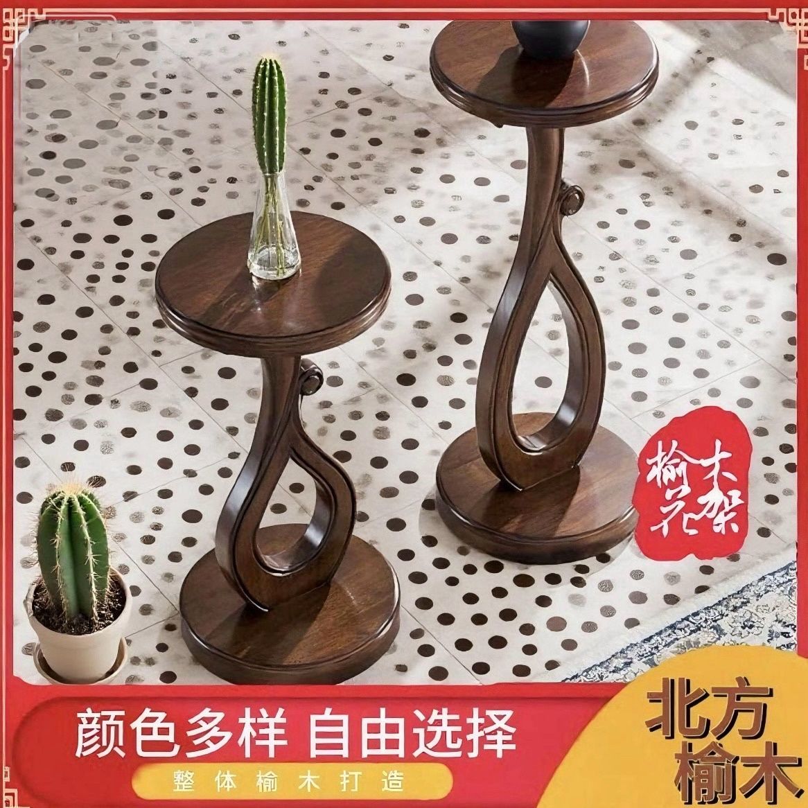 家逸花架实木置物架客厅室内中式现代简约花盆架美式高低花几落地