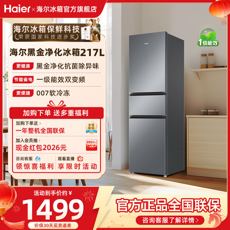海尔冰箱以旧换新补贴217L风冷无霜变频小冰箱家用一级能效官方