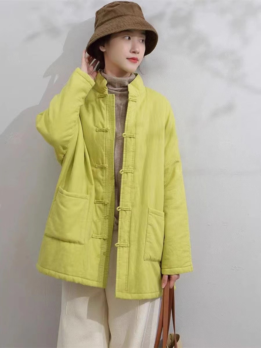 冬款中国风长棉衣外套中长款民族风麻料加厚暖和棉服中式女装文艺