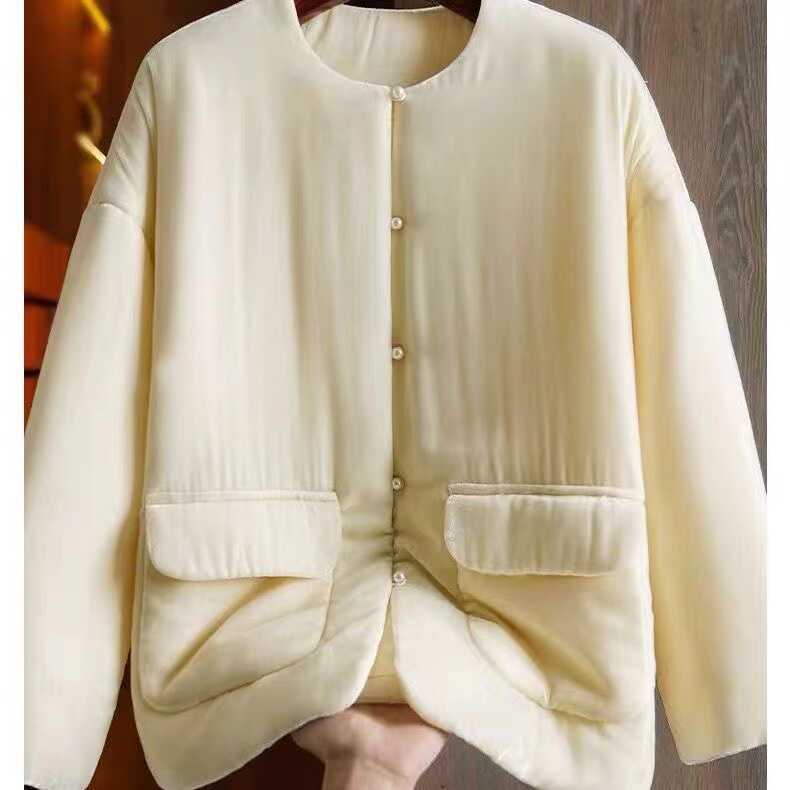 高级感超好看杏色真丝绒棉服女2024冬装炸街面包服小棉袄夹棉外套