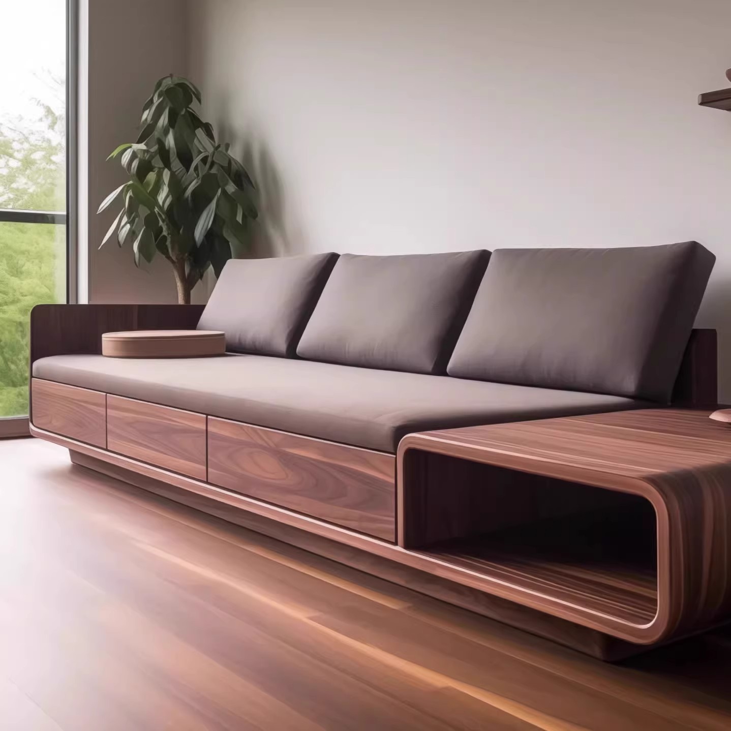 新中式白蜡木沙发现代简约转角木质冬夏两用储物直排脚踏沙发组合