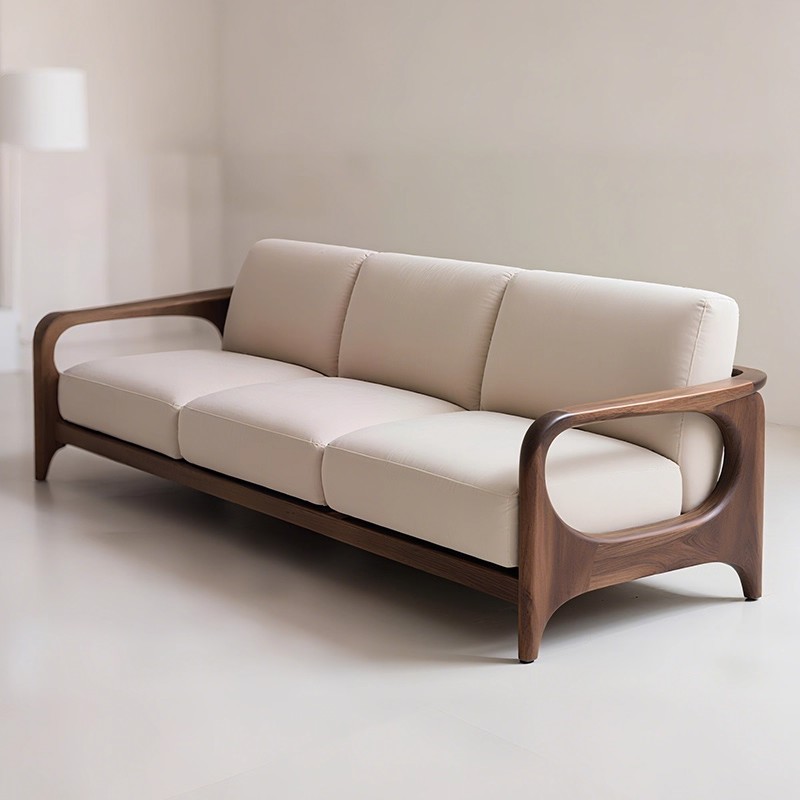新中式实木客厅沙发意式极简2025新款家用办公会所胡桃木三人沙发