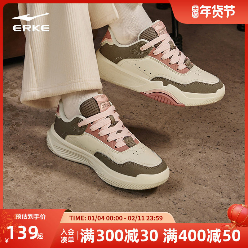 鸿星尔克女鞋板鞋厚底拿铁2025冬季新款白色复古潮休闲运动鞋子女