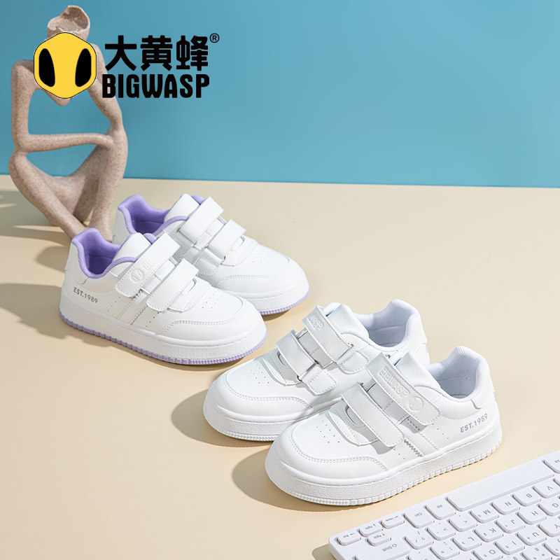 大黄蜂童鞋儿童休闲鞋魔术贴学生鞋子校园小白鞋透气白色女童板鞋