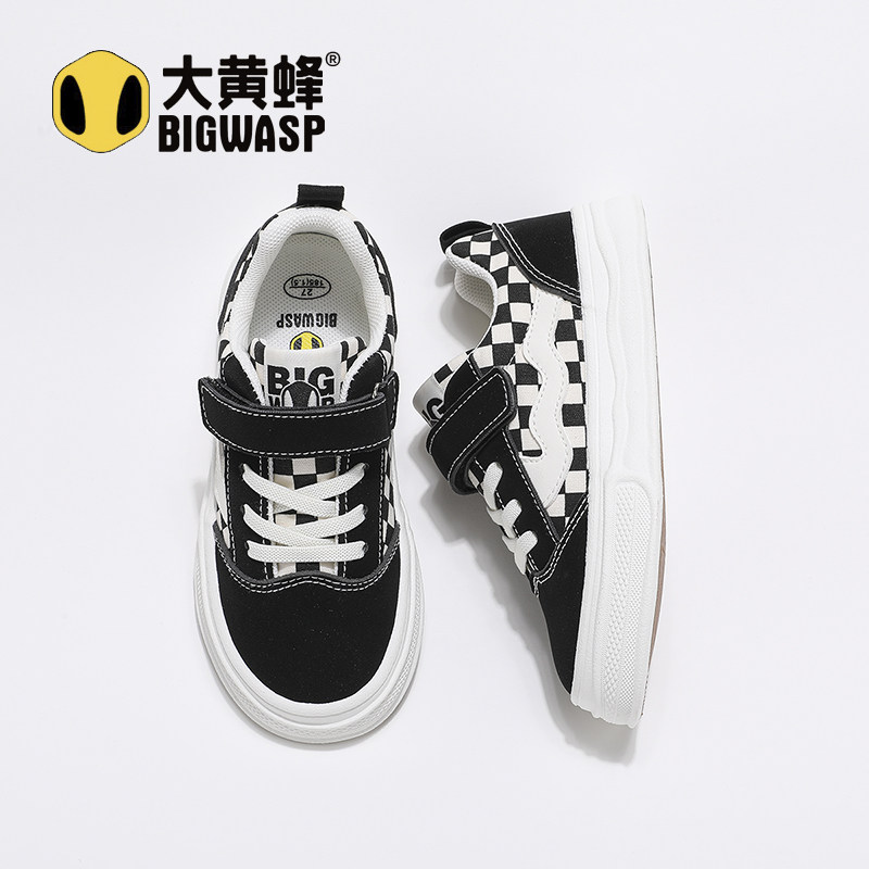 大黄蜂童鞋儿童帆布鞋低帮板鞋魔术贴格子图案透气运动鞋男童鞋子